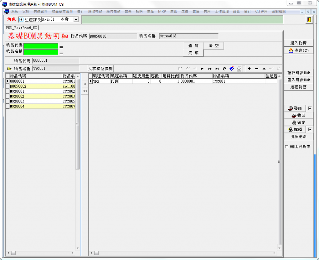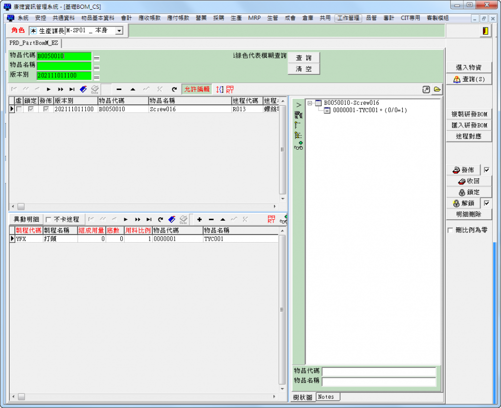 開啟生管>BOM>基礎BOM_CS