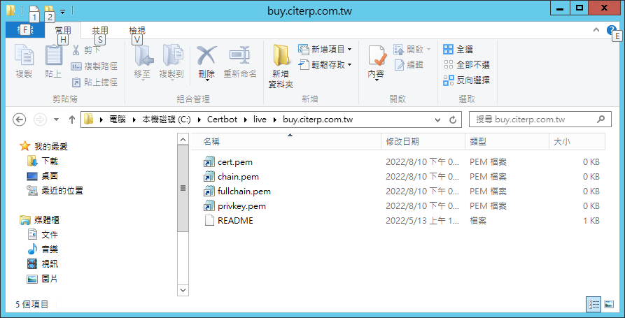 如下圖是 C:\Certbot\live\www.citerp.com.tw