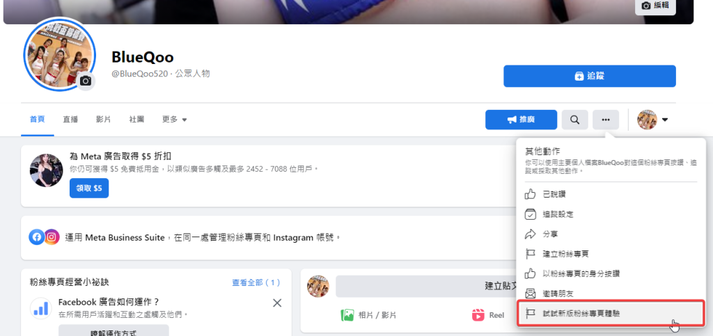 就可以看到試試新版粉絲專頁體驗的選項囉!!!