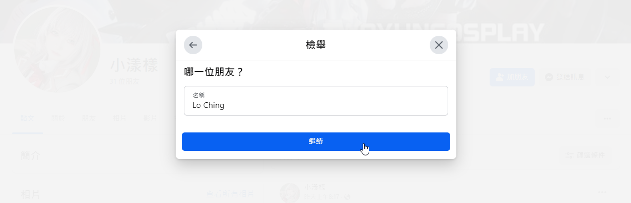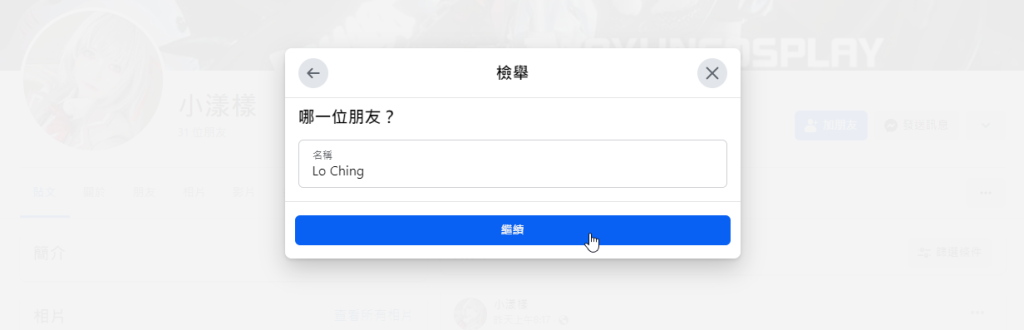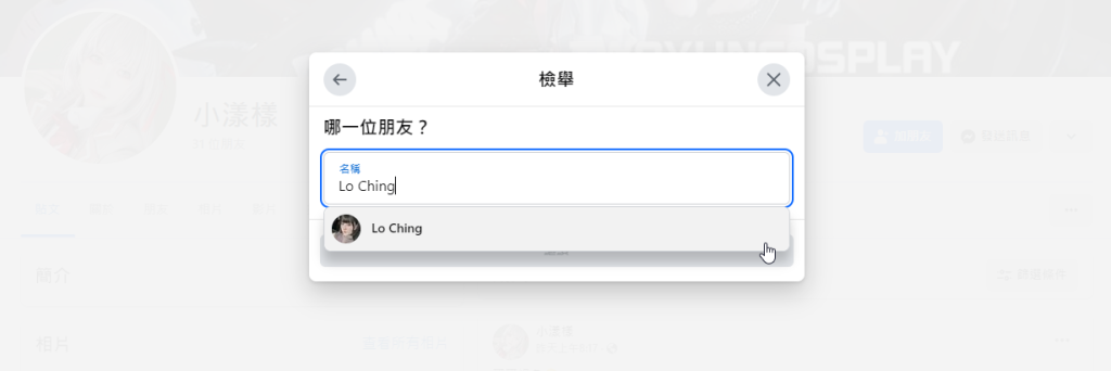 如果對方是你的臉書好友,這邊輸入ID就會找到,反之,如果並非臉書好友,就沒辦法幫忙檢舉囉!!!愛注意!!!
