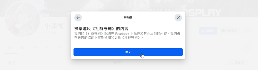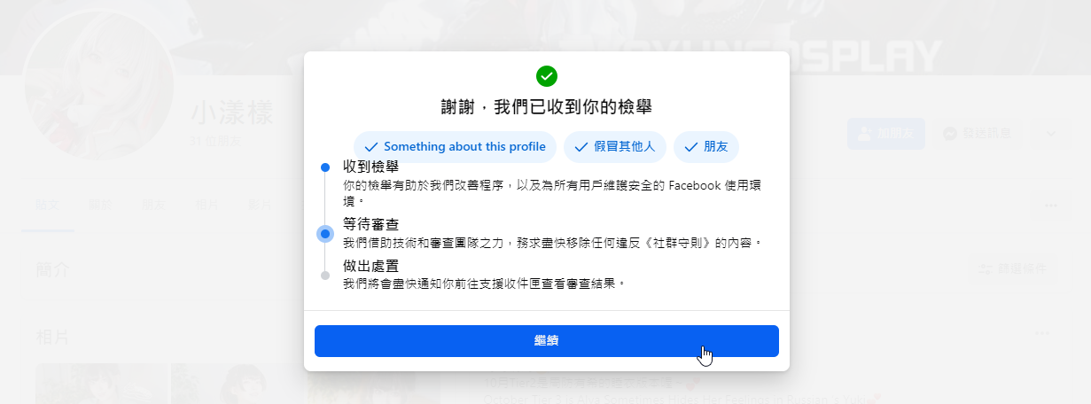 這邊會顯示進度,說真的檢舉盜用照片真的很慢XDDDD