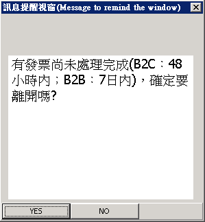 離開電子發票管理作業時,系統會再次提醒發票未處理警示。