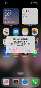 第一步 插上傳輸線,iphone手機會跳出詢問,要允許此裝置取用照片和影片嗎?按下允許。