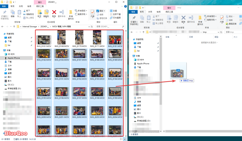 第六步 如果只想拷貝某些項目,可以從這邊選取,然後在拖曳到Windows電腦上的資料夾即可。