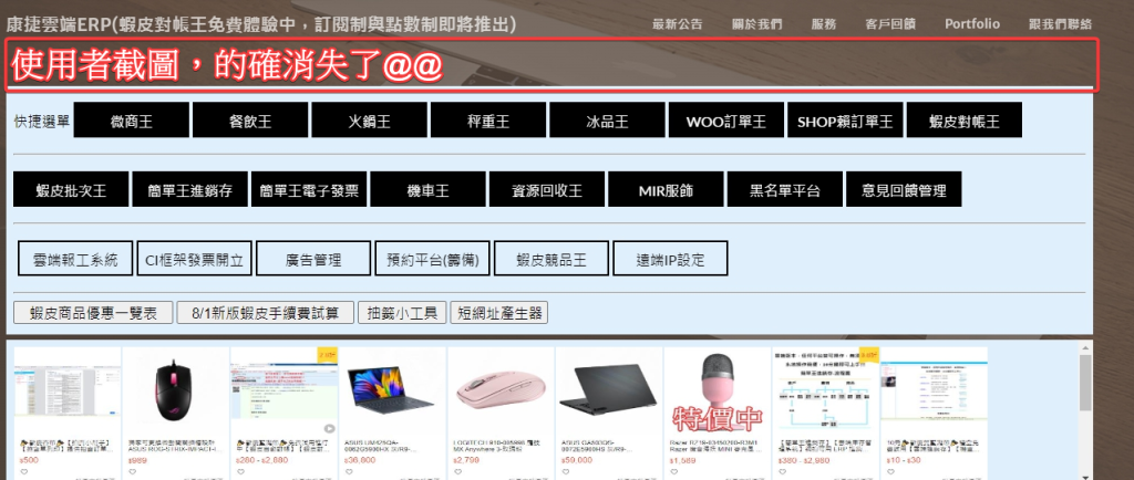今日有使用者反應,在康捷雲端ERP首頁(https://buy.citerp.com.tw/),無法看到登入區塊。