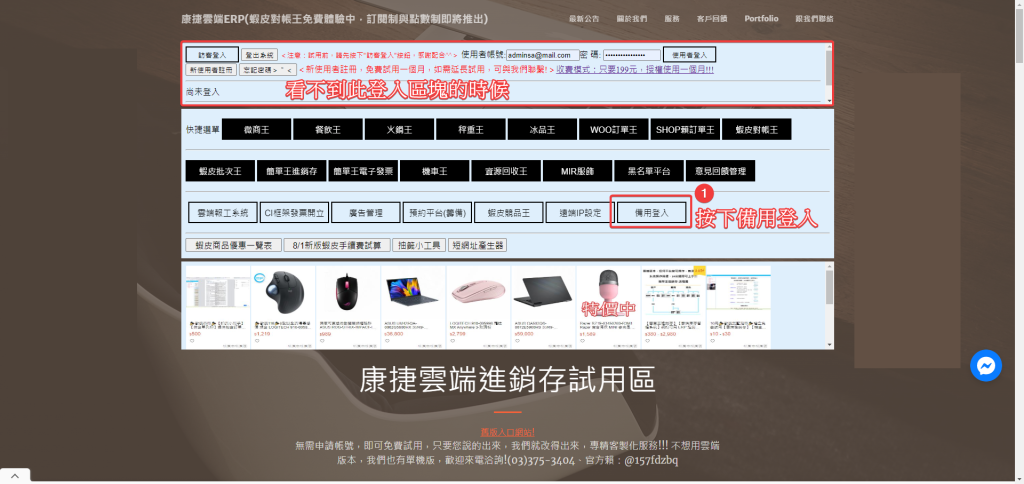 因此我們於首頁添加”備用登入”的選項,按下備用登入。
