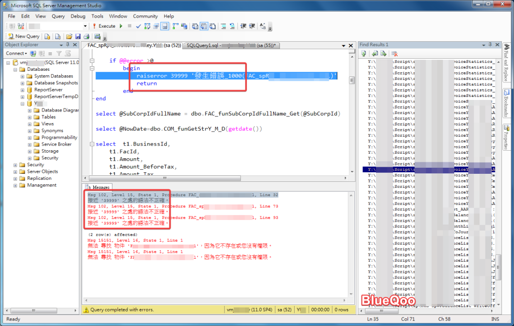 下圖可以看到原本raiserror 後面 可以接使用者自訂數字來顯示錯誤,但新版之後卻會顯使語法不正確