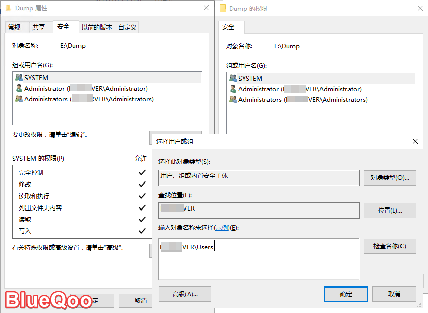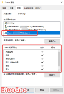 因此在共享Dump這個資料夾之後,我們需要在安全中增加使用者權限。