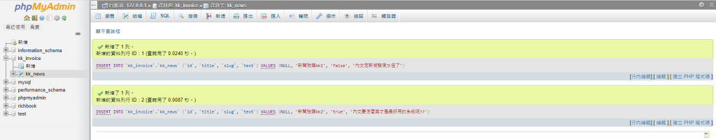 [Mysql/MariaDB]phpMyAdmin用SQL語法insert新增資料