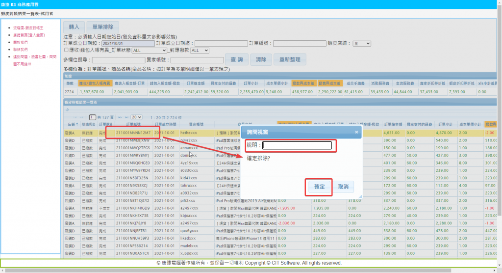 如這筆訂單,有特殊情況,想排除於對帳結果一覽表之外,沒問題!!!