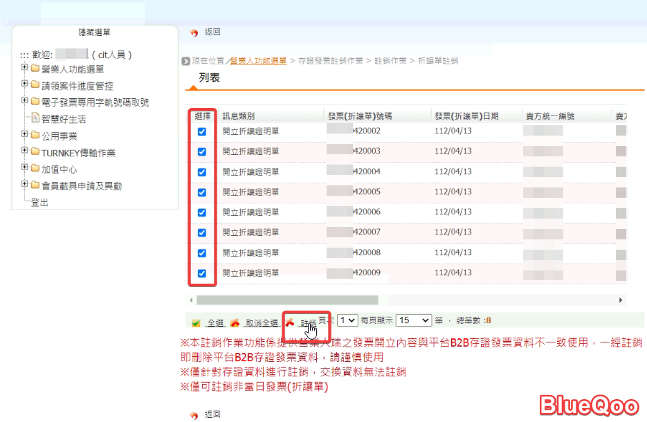 如何註銷已上傳大平台的折讓單?電子發票整合服務平台 Posted on 2023-04-21Updated on 2023-12-14by 康捷QooCategories:TurnKey, 電子發票 如何註銷已上傳大平台的折讓單?電子發票整合服務平台