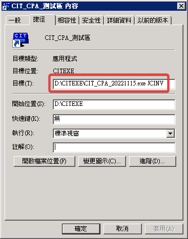 exe讀取參數 CITExe 使用捷徑設定參數,讓執行檔讀取不同的ini,藉此連接不同的資料庫。
