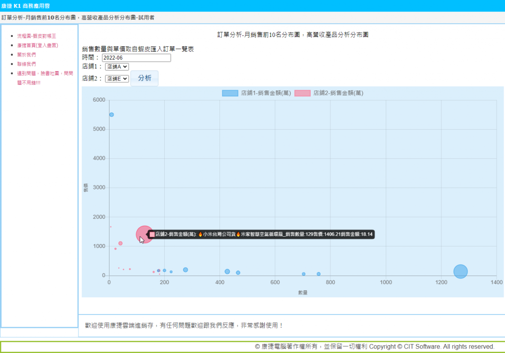 蝦皮對帳王-蝦皮訂單分析-月銷售前10名分布圖,高營收產品分析分布圖 Posted on 2022-07-11Updated on 2022-07-12by 康捷QooCategories:蝦皮對帳王, 蝦皮訂單分析 蝦皮對帳王-蝦皮訂單分析-月銷售前10名分布圖,高營收產品分析分布圖