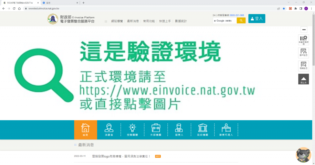財政部-電子發票專用字軌號碼取號-下載-測試區 Posted on 2021-11-02Updated on 2023-12-14by 康捷QooCategories:TurnKey, 電子發票 財政部-電子發票專用字軌號碼取號-下載-測試區