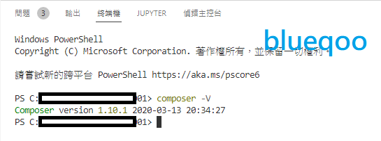 如果不知道是否有沒有安裝composer,可以開啟終端機,於>之後打入指令: