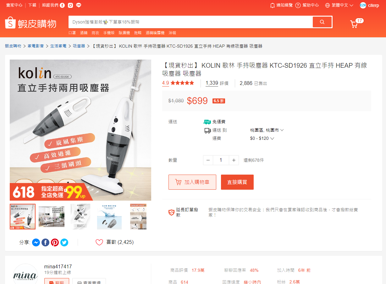 第一步 直接進入到賣場的商品頁面