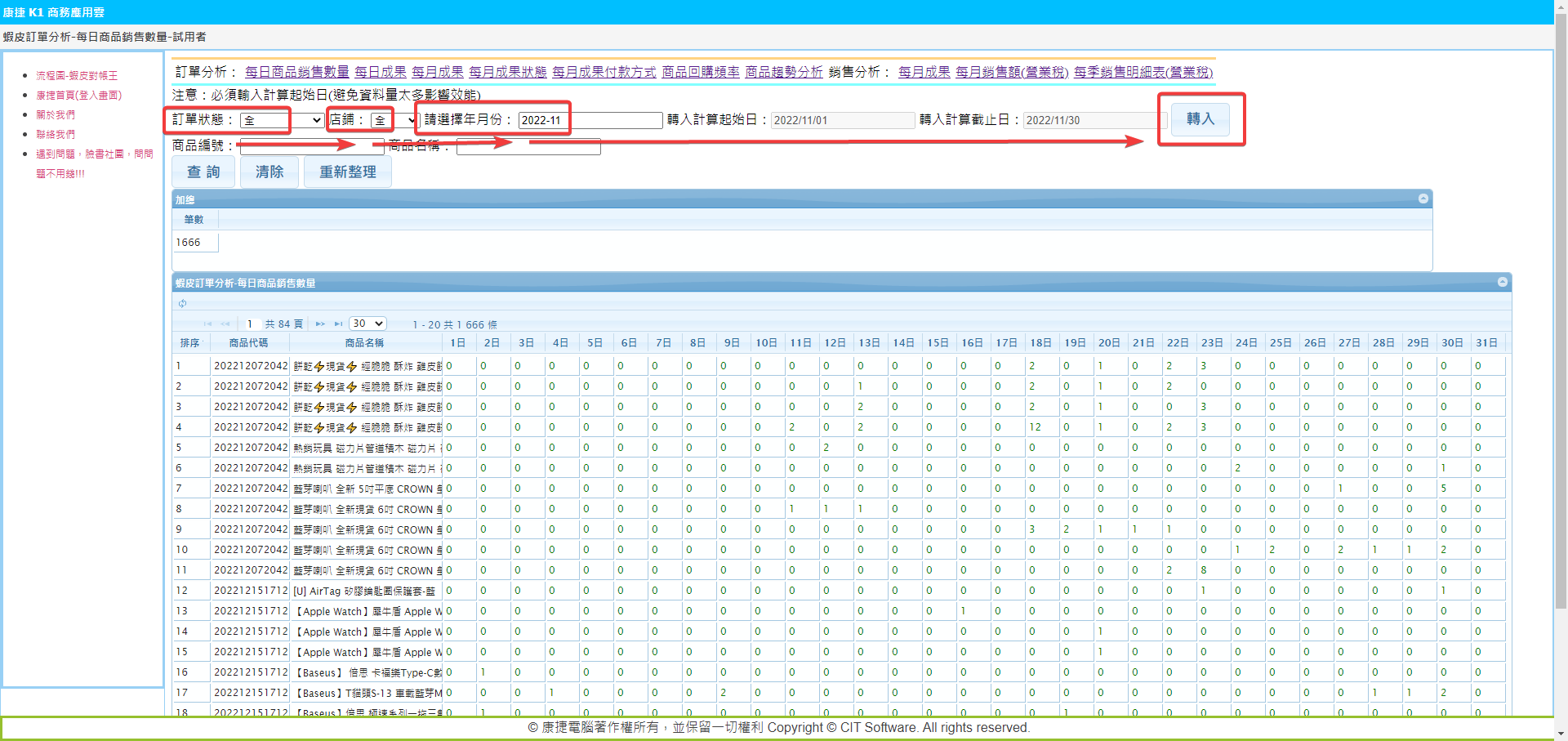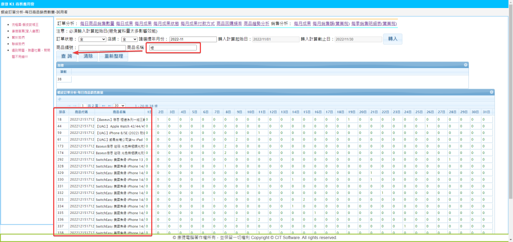 可以再依照想查詢的商品名稱,輸入關鍵字查詢