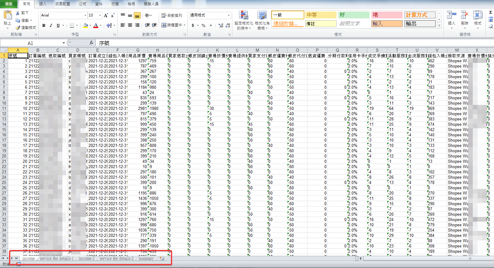 蝦皮對帳王-蝦皮Excel匯入優化New1-多個頁籤一鍵轉入