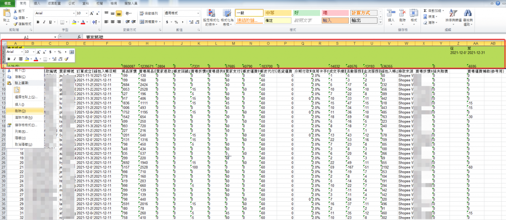 欄位名稱以上多餘的五列,還是需要使用者幫我們刪除,記得每個income頁籤都要刪除喔!