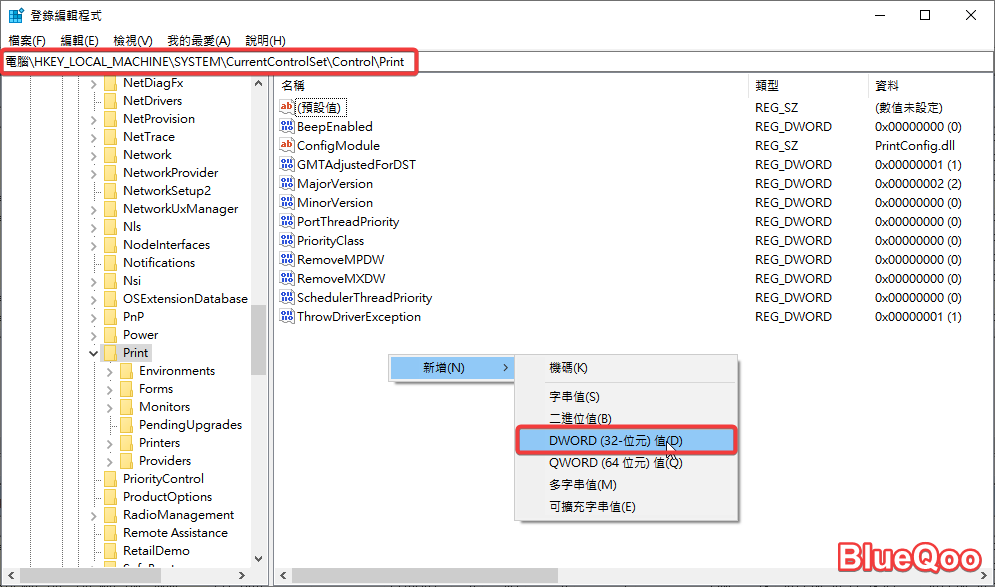 前往路徑「電腦\HKEY_LOCAL_MACHINE\SYSTEM\CurrentControlSet\Control\Print」