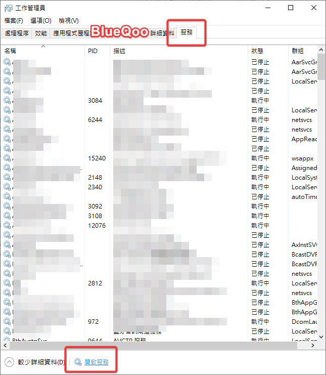 第二步 點選到服務頁籤,然後下方點開啟服務。