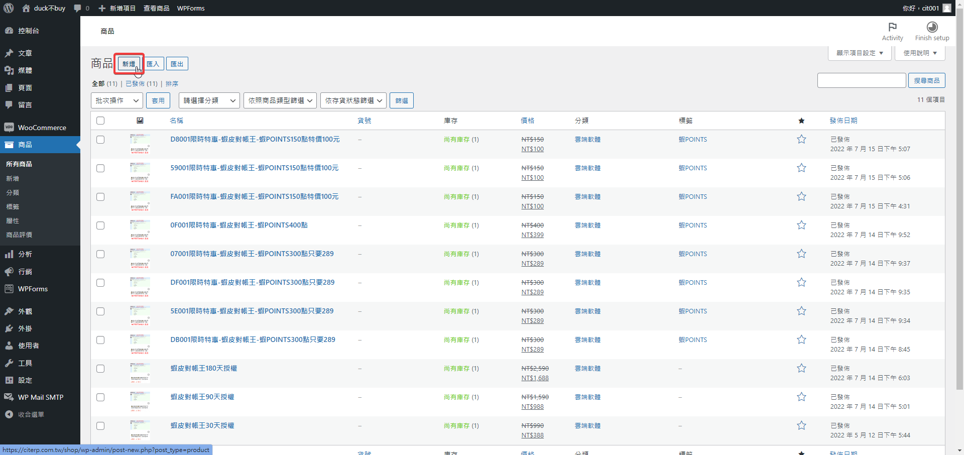 第三步 接著我們到WooCommerce按下新增商品。