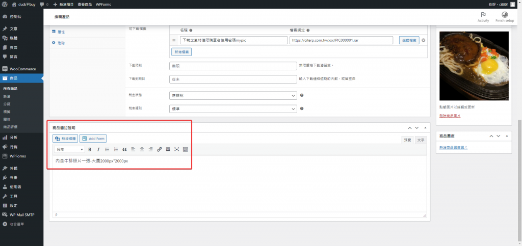 簡短說明跟上面的商品描述會呈現在販售頁面不同的地方,這部分就看個人喜歡怎麼呈現囉!!
