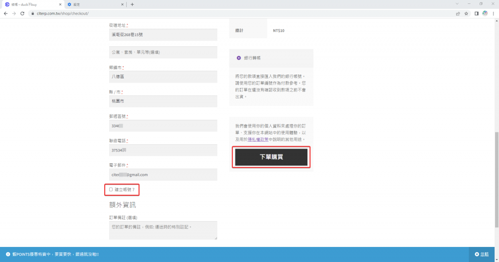 第六步 在結帳的過程都可以建立帳號,如果要用訪客的身分購買,最後按下”下單購買”即可。