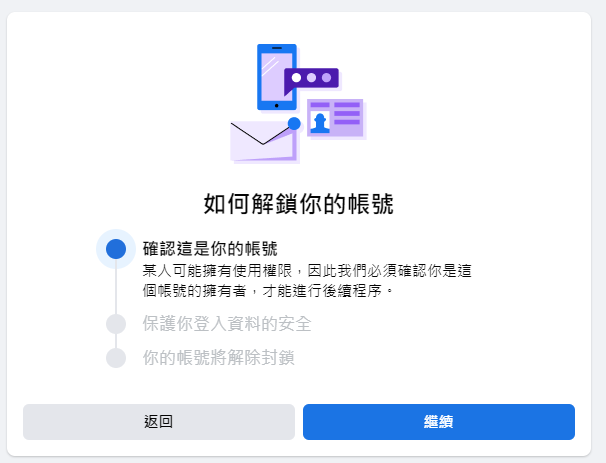 Facebook設置了帳號鎖定機制,保護帳號安全,避免個人資料被盜。如果察覺到異常活動就會自動將帳號鎖定。在帳號遭到鎖定之後,用戶必須要依照指令進行解鎖帳號。