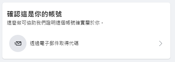 透過電子郵件取得代碼,系統會傳送驗證碼到你選擇的電子郵件地址。